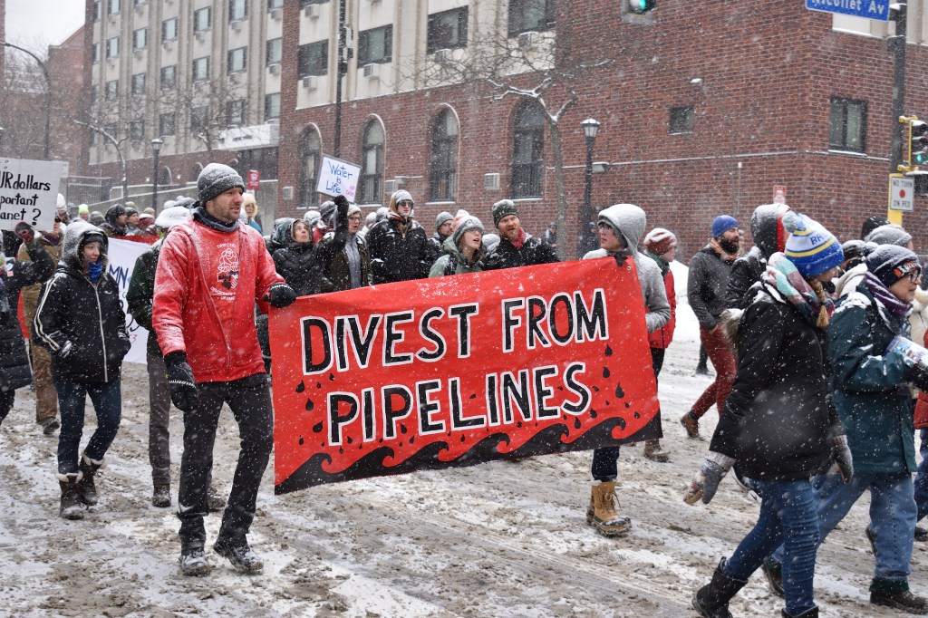 These are photos from the day a van full of us went to Minneapolis for a rally related to USBank’s funding of fossil fuel projects. Minneapolis is the headquarters of USBank.